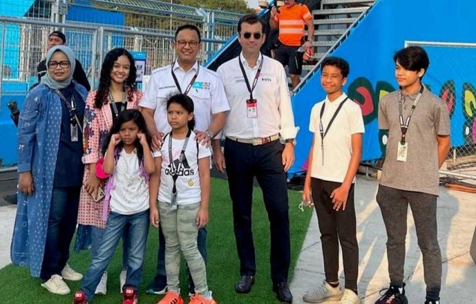 JAKARTA – Gubernur DKI Jakarta Anies Baswedan datang bersama keluarga untuk menyaksikan ajang balap mobil listrik Formula E di International E-Prix Circuit (JIEC), Ancol, Jakarta Utara, Sabtu (4/6/2022). Hal itu terlihat dari unggahan media sosial Instagramnya @aniesbaswedan.