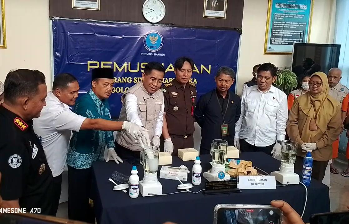 Pemusnahakan barang terlarang ini dilakukan di Gedung BNN Banten, Jalan Syekh Nawawi Al Bantani, Cipocok Jaya, Kota Serang, Selasa, 12 Agustus 2025.