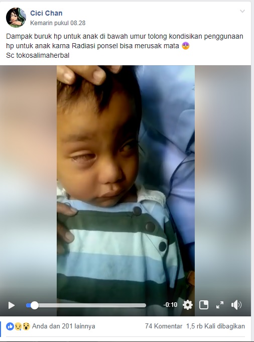“Dampak buruk hp untuk anak di bawah umur tolong kondisikan penggunaan hp untuk anak karna Radiasi ponsel bisa merusak mata.” tulis Cici.