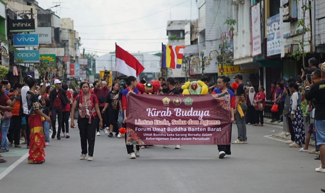 SERANG, Sultantv.co – Forum Kerukunan Umat Beragama (FKUB) Kota Serang menggelar kirab dan pentas seni budaya lintas etnis, suku dan agama di kawasan pedestarian Royal Baroe, Minggu, 15 Februari 2026.