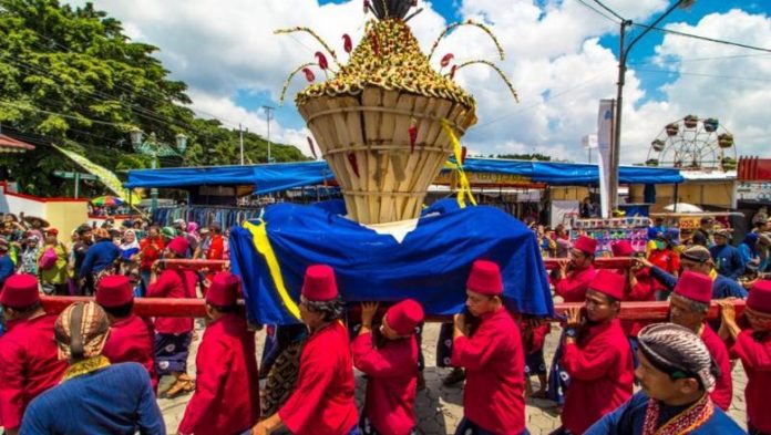 Perayaan Grebeg Besar menggunakan tujuh gunungan