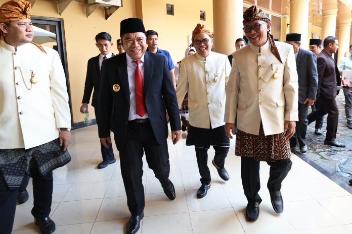 CILEGON – “Selamat HUT ke-25 Kota Cilegon. Apresiasi setinggi-tingginya kepada Pemerintah Kota Cilegon,” ucap Penjabat (Pj) Gubernur Banten Al Muktabar pada  Rapat Paripurna Istimewa Peringatan HUT ke-25 Kota Cilegon, di Gedung DPRD Kota Cilegon, Jl. Jenderal Sudirman, Ramanuju,  Kota Cilegon, Sabtu (27/4). Rapat dipimpin oleh Ketua DPRD Kota Cilegon Isro Miraj.