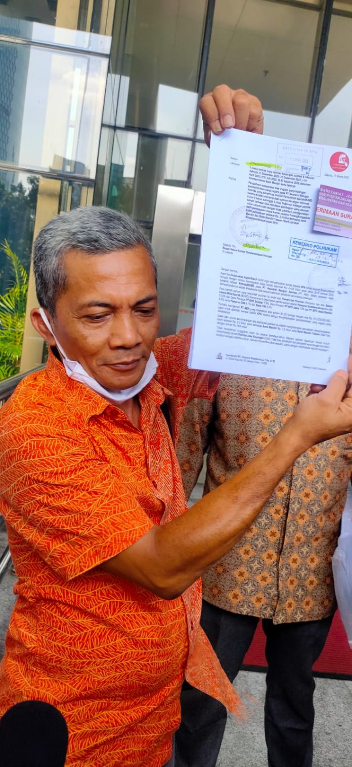 Dalam laporannya yang diberikan kepada bagian pengaduan masyarakat di gedung KPK. IAW menyertakan sejumlah bukti, berupa transaksi perusahaan terkait laporan keuangan, surat dari bank Mandiri berupa kewajiban PT. ABA untuk membayar biaya claim.