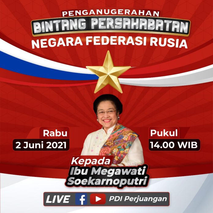 Ketua Bidang Luar Negeri DPP PDI Perjuangan, Ahmad Basarah menyatakan bahwa Presiden RI Kelima Megawati Soekarnoputri akan menerima Bintang Jasa Negara untuk Persahabatan (State Order of Friendship) dari Republik Federasi Rusia karena jasa-jasanya yang besar dalam mempererat persahabatan, kerjasama, dan saling menghargai antar rakyat kedua negara, yakni Indonesia dan Rusia.