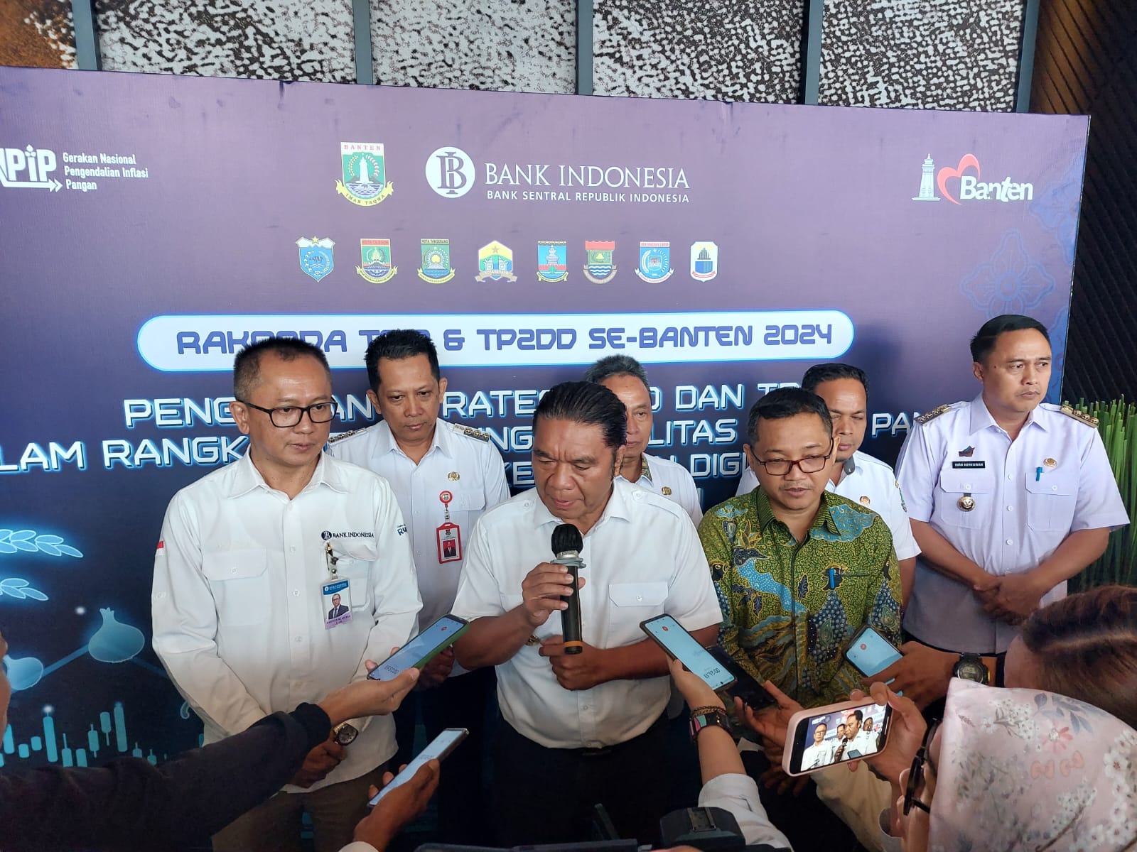 Hal itu diungkap Al Muktabar pada Rapat Koordinasi Daerah Tim Pengendalian Inflasi Daerah (TPID) dan Tim Percepatan dan Perluasan Digitalisasi Daerah (TP2DD) se- Provinsi Banten di Hotel Aston, Kota Serang, Rabu (21/2/2024). Rakorda mengambil tema “Penguatan Strategi TPID dan TP2DD dalam Rangka Mendukung Stabilitas Harga Pangan dan Keuangan Ekonomi Digital di Provinsi Banten”.