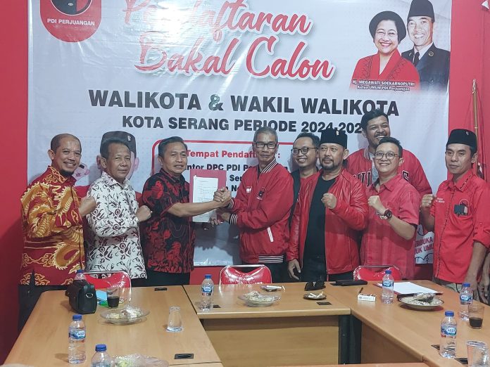 SERANG – Bakal Calon (Bacalon) Walikota Serang mengembalikan formulir pendaftaran sebagai calon Walikota ke DPC Partai Demokrasi Indonesia Perjuangan (PDIP) Kota Serang, Minggu (5/5).