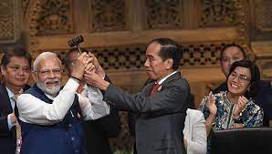 “Terima kasih dan palu kepemimpinan saya serahkan kepada India,” ucap Jokowi.
