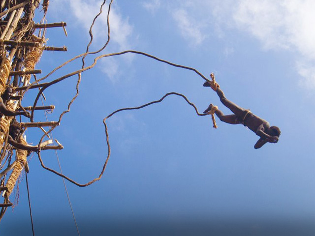 Tradisi ini diikuti oleh para pria dewasa. Mereka akan menaiki menara kayu setinggi 100 kaki atau 30 meter lalu kaki mereka akan diikat dengan tali yang terbuat dari akar kayu. Panjang akar akan diukur sesemikian rupa agar tubuh peserta tak menyentuh tanah. Setelah segala persiapn selesai barulah para pria dewasa tersebut diminta melompat dari atas menara dengan poisisi kepala dibawah dan kaki diatas.