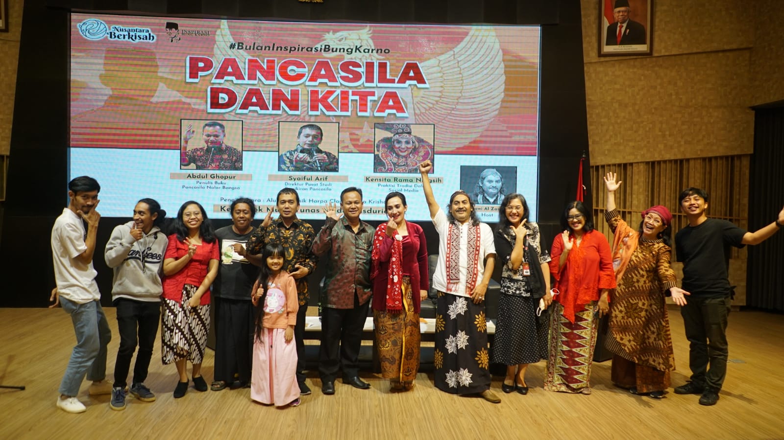 Dihadiri oleh narasumber yang memiliki kapasitas seperti Abdul Ghopur, Seorang Penulis Buku Pancasila dan Nalar Bangsa. Syaiful Arif Direktur Pusat Pemikiran Pancasila, serta Kensita Rama Ningsih seorang Praktisi Tradisi Dalam Sosial Budaya yang aktif mengkampanyekan pentingnya nilai-nilai pancasila dalam berbangsa dan bernegara.