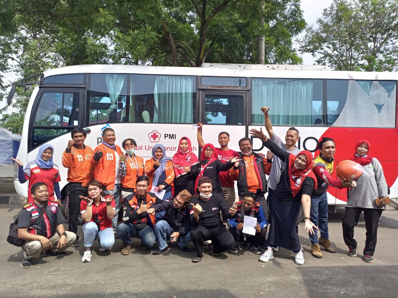 Dalam mensukseskan kegiatan bakti sosial donor darah, PMI Kota Serang bekerja sama dengan mitra ojek online (ojol) mensosialisasikan kegiatan ini kepada masyarakat umum.