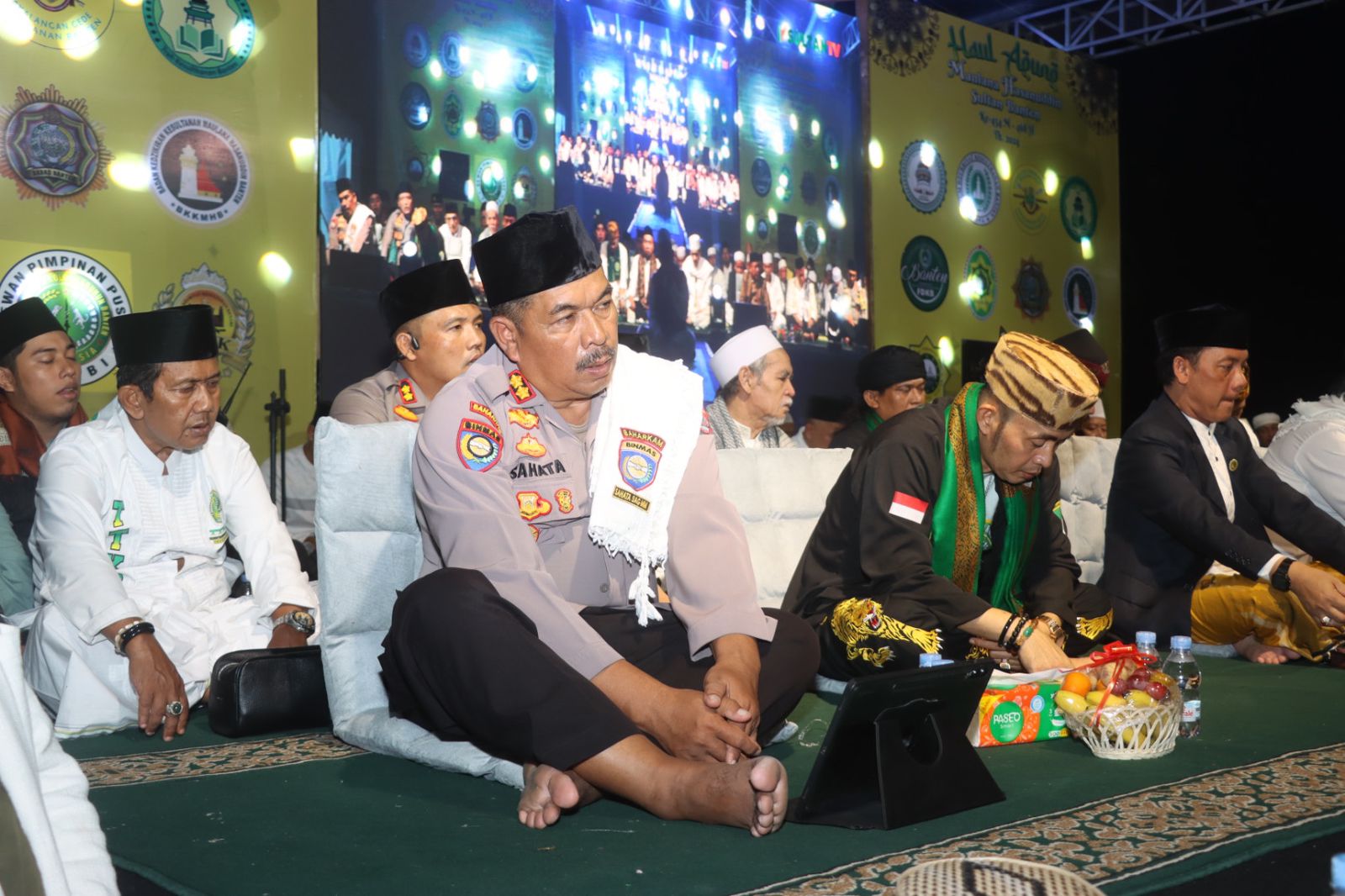 Perwakilan Polda Banten Akbp Sahata bersama Kapolresta Serkot Kombes Pol. Sofwan Hermanto di dampingi Kapolsek Kasemen mengikuti kegiatan Haul sultan maulana hasanudin ke 468 H. di Alun-alun Masjid Agung Banten Lama Kasemen.