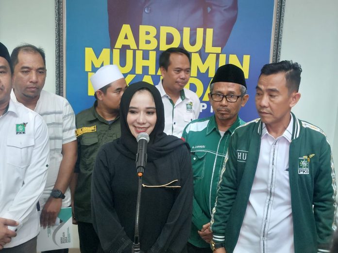 SERANG – Ratu Ageng Rekawati, mengembalikan formulir pendaftaran Bakal Calon Gubernur atau Cagub Banten ke Dewan Pengurus Wilayah (DPW) Partai Kebangkitan Bangsa (PKB) Provinsi Banten, Rabu (1/5).