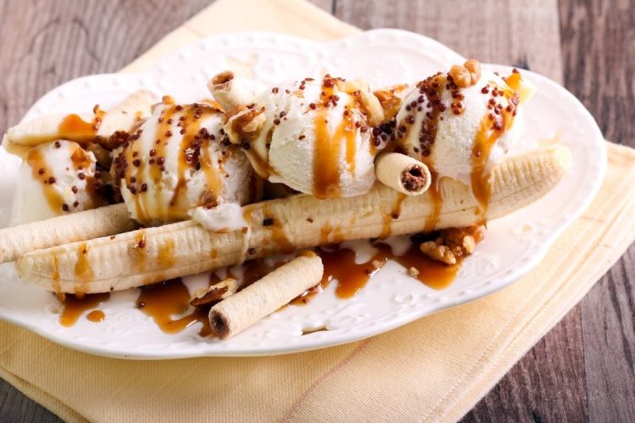 Banana Split karamel bisa dijadikan sebagai hidangan keluarga anda. Pastikan pisang karamel dan sirup karamelnya sudah dingin agar es krim tidak meleleh. Begini resep dan cara membuatnya.