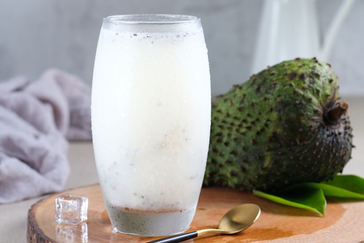 - Sajikan jus sirsak dalam gelas yang sudah berisi es batu.