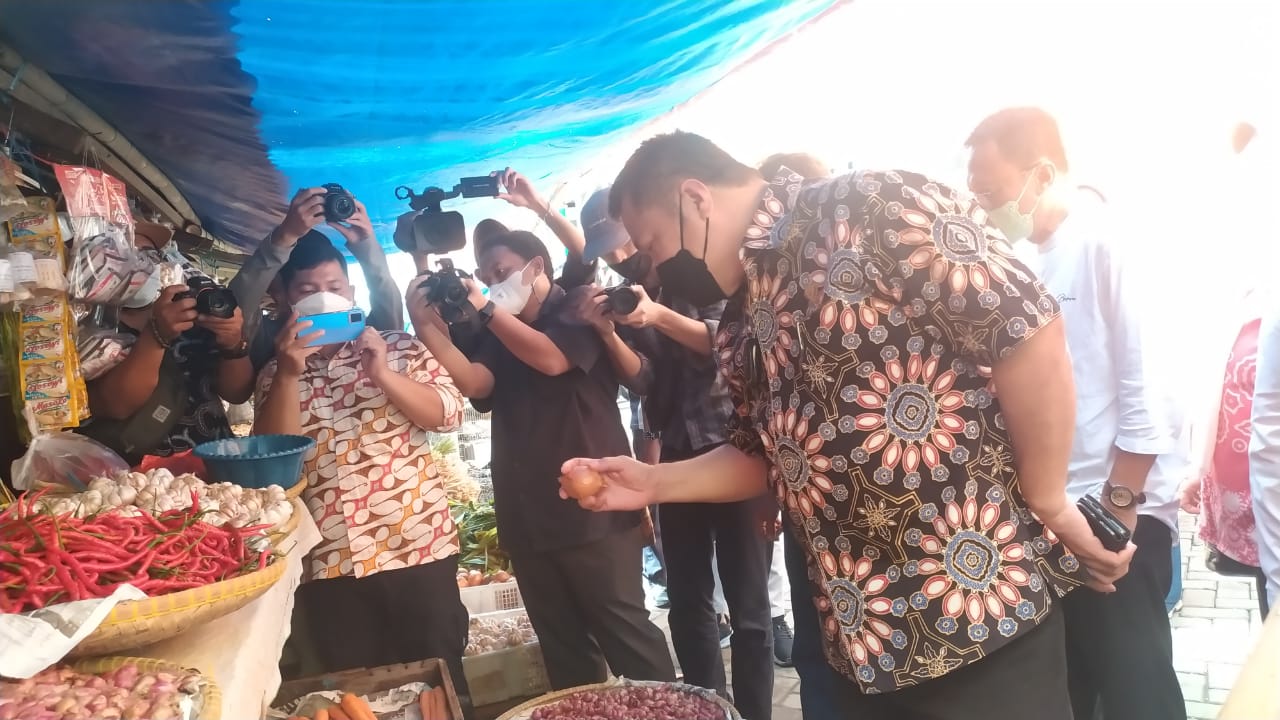 Dalam blusukannya ke Pasar Rakyat Blok F kota Cilegon, Jan meninjau beberapa pedagang bahan pokok seperti daging, beras, bumbu dapur, ayam potong dan minyak.