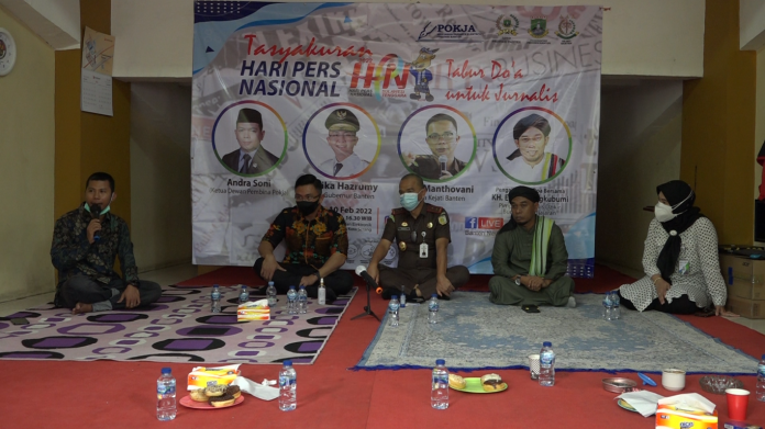 Pokja Wartawan Harian dan Elektronik Provinsi Banten menggelar tasyakuran dalam rangka Hari Pers Nasional (HPN) 2022 di Sekretariat Pokja Wartawan Harian dan Elektronik Provinsi Banten, pada Kamis (10/2/2022).