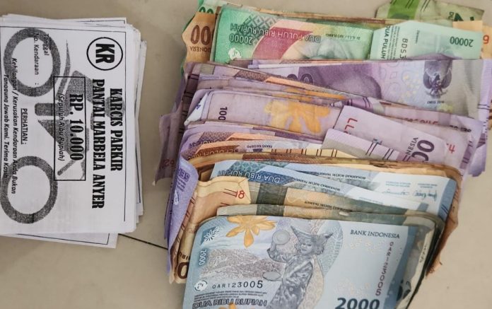 “Juru parkir ilegal yang diamankan telah melakukan pemanfaatan jalan trotoar yang difungsikan sebagai lahan parkir motor dengar memasang tarif tiket Rp10.000,- kepada pengunjung wisata pantai. Pengelola parkir tidak memiliki Ijin parkir dari pemerintah daerah dan dari tiket Rp10.000,- kendaraan tidak membayarkan pajak daerah dan hasil dari parkir digunakan untuk kebutuhan pribadi antara pengelola dengan juru parkir dan belum ditemukan fakta adanya uang yang disetorkan kepada oknum ASN maupun pejabat desa,” tambahnya.