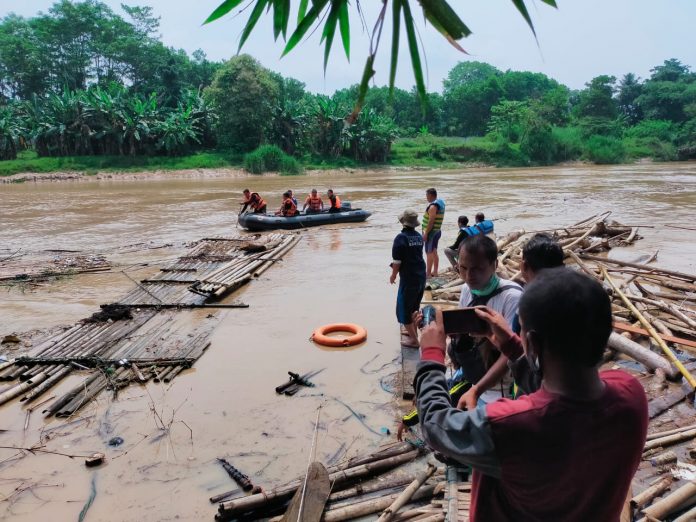 Air yang cukup deras membuat proses pencaharian sedikit terkendala, petugas melakukan pencarian dengan menggunakan alat pelampung dan perahu.